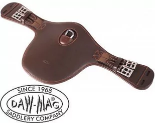 Popręg skokowy z fartuchem chroniącym brzuch konia podczas skoku. Zaprojektowany dla koni które skacząc uderzają przednimi nogami o brzuch. Dodatkowym elementem jest karabinek na środku popręgu ułatwiający użycie wytoka lub napierśnika. Zakończony z dwóch stron elastycznymi gumami. Dostępne kolory: