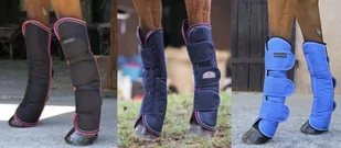 Ochraniacze transportowe Tyrex 1200D - EQUI-THEMEWykonane z wytrzymałego, oddychającego i wodoodpornego materiału 1200D. Wypełnione miękką pianką o grubości 12mm. W środku podszyte syntetycznym futerkiem zapobiegającym obtarcia. Zapinane na mocne rzepy, obszyte lamówką w kontrastującym kolorze. Kolor: granatowy/bordowy - granatowyczarny/malinowy - czarnyniebieski/czarny - niebieskiCena za komplet na cztery nogi.