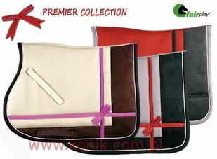 Najnowsza kolekcja FAIR PLAY PREMIER COLLECTION!Bardzo elegancki czaprak najwyższej jakości. Niezwykle oryginalny. Wierzchnia strona czapraka wykonana jest w 100 % z bawełny połączonej z miękką tkaniną przypominającą zamsz. 240 g synthermax''u i 5 mm wypełnienia. Kokardki odpinane.