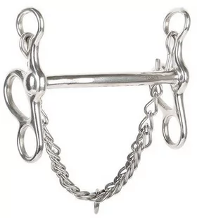 Pelham zaprzęgowy prosty.Pierścienie nieruchome ze stali nierdzewnej.W komplecie łańcuszek i haczyki.Nie powoduje reakcji alergicznych.Grubość: 12 mm...