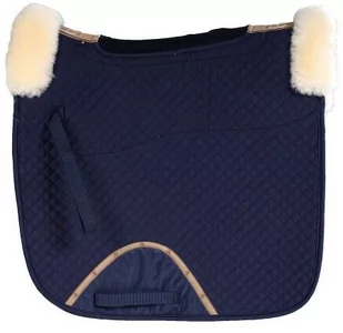 W miejscu przylegania popręgu naszyto wzmocnienie zabezpieczające przed przecieraniem. Kolor: granatowyKolor futra: naturalnyZastosowanie: DL (ujeżdżeniowy)Rozmiar: Full. . .