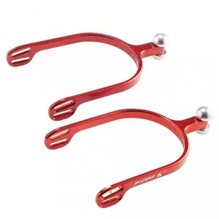Ostrogi wykonane są z wysokiej jakości aluminium. Solidne i lekkie. Otwory do przełożenia pasków są ułożone pod lekkim kątem, co chroni skórę obuwia przed wytarciami. Trzpień z półkulkami po obu stronach (góra i dół)Zabarwienie uzyskuje się w procesie anodowego utleniania z błyszczącym wykończeniem. Długość trzpienia: