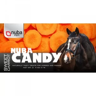 Cukierki Nuba Candy Sweet Carrot 2 kg - Nuba Equi - marchew100% naturalnych składników. Nie zawierają sztucznych aromatów, barwników ani konserwantów. Delikatny, słodki aromat marchwi, naturalny skład i solidne opakowanie to atuty naszego produktu. Smakołyki są chętnie zjadane przez konie, więc będą świetnym sposobem na nagrodzenie lub przywitanie podopiecznego. Składniki analityczne: