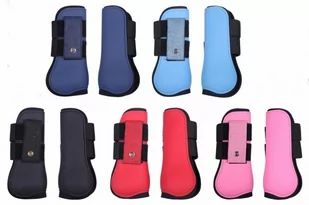 Ochraniacze RIO - QHP - przodyWykonane z zewnątrz z mocnego, plastikowego tworzywa. Zapinane na mocny rzep ozdobiony brokatowym materiałem. Anatomiczny kształt dobrze dopasowuje się do końskiej nogi. Od środka podszyte miękkim neoprenem. Cena za parę na przednie nogi.
