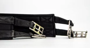 Delikatnie podszyty, wykonany z poliestrów ekonomiczny popręg.Posiada klamry na sztywnych paskach.Kolor: czarny...