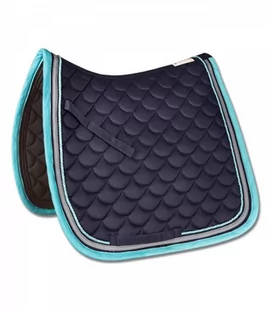 Potnik z chłonnym materiałem od wewnątrz.Ozdobiny szeroką lamówką, z dwukolorowym sznureczkiem.Rzep na przystuły, pasek na popręg.Kolor: night blue/aqua...