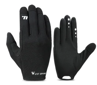 Rękawiczki rowerowe na rower na wiosne lato jesień M czarne 🚴♂️ WEST BIKING Full Finger – lekkie, oddychające i funkcjonalne Pełnopalcowe rękawiczki rowerowe stworzone z myślą o komforcie jazdy wiosną i jesienią. Zapewniają pewny chwyt kierownicy, ochronę dłoni oraz możliwość obsługi telefonu bez zdejmowania rękawic. Idealne do: MTB Szosy Trekkingu Codziennej jazdy miejskiej Innych sportów outdoorowych 🔥 Najważniejsze zalety ✔ Obsługa ekranu dotykowego (kciuk i palec wskazujący) ✔ Antypoślizgowa powierzchnia dłoni – stabilny chwyt ✔ Oddychający materiał – brak uczucia przegrzania ✔ Bardzo lekkie – ok. 36,1 g para ✔ Materiał chłonny na kciuku – szybkie wytarcie potu ✔ Wydłużony mankiet – łatwe zakładanie i lepsza ochrona przed chłodem ✔ Elementy odblaskowe – większe bezpieczeństwo po zmroku 📏 Specyfikacja techniczna Marka:
