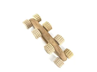 Drewniany masażer do ciała karku 8 rolek Bardzo wygodny, ergonomiczny uchwyt do trzymania w dłoni. Prosty w użyciu i skuteczny. Używanie drewnianych masażeró...