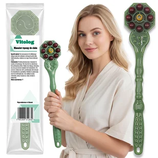 Masażer Akupresurowy Vitolog – do Rozluźnienia Mięśni Pleców i Karku Odkryj najprostszy i najskuteczniejszy sposób na walkę z codziennym napięciem mięśniowym! Ręczny masażer oklepujący Vitolog to idealne narzędzie, które pozwoli Ci wykonać intensywny masaż bez potrzeby użycia prądu czy baterii. Zaprojektowany z myślą o ergonomii, lekki i długi masażer stanie się Twoim osobistym fizjoterapeutą, zawsze gotowym do pracy. Jeżeli spędzasz wiele godzin w pozycji siedzącej, trenujesz lub po prostu czujesz sztywność po ciężkim dniu, masażer akupresurowy dostarczy Ci natychmiastowej ulgi. Precyzyjna głowica umożliwia celowane oklepywanie trudno dostępnych obszarów, takich jak środek pleców czy dolny odcinek kręgosłupa, zapewniając efekt głębokiej stymulacji mięśni, znanej z profesjonalnych gabinetów. Ulga w Napięciu: