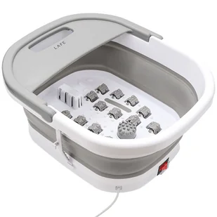 Masażer do stóp Lafe FlexiSpa LAFMAS47805 Składany masażer do stóp FlexiSpa – domowy relaks na najwyższym poziomie Odkryj komfort i odprężenie, na które zasługujesz każdego dnia. Masażer do stóp FlexiSpa to nowoczesne, wielofunkcyjne urządzenie stworzone z myślą o Twoim zdrowiu i codziennym relaksie. Doskonale sprawdzi się zarówno po długim dniu pracy, jak i jako element wieczornego rytuału wyciszenia. Dzięki kompaktowej formie i zaawansowanym funkcjom, FlexiSpa zamieni każdą chwilę w domowe SPA. NAJWAŻNIEJSZE PARAMETRY Masaż bąbelkami Masaż podczerwienią Masaż wibracyjny Rolki masujące Wymienne końcówki masujące Zasilanie: