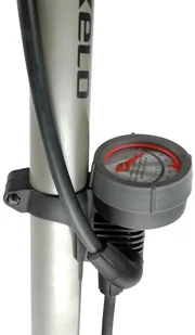 Pompka podłogowa z manometrem. Wyposażona w wężyk o długości 55cm. Czytelny manometr ze skalą PSI/BAR. Dźwignia zamykająca wentyl . Materiał: stal + tworzywo.
