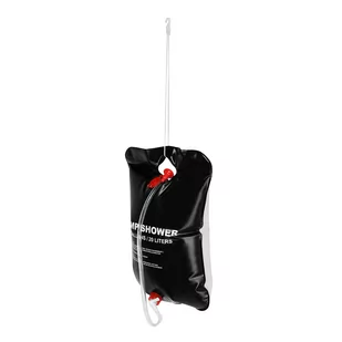Prysznic posiada sznurek z hakiem, dzięki czemu prysznic można w szybko i w prosty sposób zawiesić na dowolnym drzewie lub drążku. Prysznic turystyczny Nils został wykonany ze szczelnego, trwałego materiału, który posłuży na wiele sezonów wyjazdowych. Dzięki czarnej powierzchni pojemnik z wodą, po wystawieniu na promienie słoneczne może rozgrzać się nawet do 48 stopni Celsjusza. Na całość zestawu składa się również wąż ze słuchawką, co znacznie podnosi komfort kąpieli. Przy racjonalnym dozowaniu zużycia wody, pełny zbiornik prysznica 20l jest w stanie obsłużyć 2 osoby.