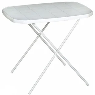 Stolik turystyczny składany na stelażu stalowym, blaty wykonany z tworzywa sztucznego. Praktyczny, lekki i funkcjonalny. Po złożeniu zajmuje mało miejsca więc idealnie sprawdza się na biwakach, campingach, polecany również do ogrodu, na balkon i tarasy. Stolik turystyczny blat i stelaż w kolorze białym.