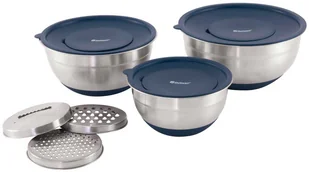 Zestaw naczyń Outwell Chef Bowl Set with Lids & Graters - silver to 3 miski o różnych pojemnościach, które świetnie spiszą się w kuchni outdoorowej oraz codziennej. Ich atutami są trwałość i jednocześnie utrzymanie niskiej wagi. Każda z misek wchodząca w skład zestawu turystycznego Outwell Chef Bowl Set with Lids & Graters - silver powstała ze stali nierdzewnej. Uzupełniono je w podwójne pokrywki polietylenowe, które posiadają wyprofilowane uchwyty ułatwiające zdejmowanie. Każda z pokrywek posiada również wewnętrzną mniejszą część wymienną, którą możesz zastąpić jedną z trzech dołączonych do kompletu tarek stalowych do warzyw.