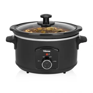 Wolnowar Tristar VS-3915 o pojemności 3,5 litra, pozwala na przygotowanie ciekawych, smacznych posiłków, bez konieczności poświecania im ciągłej uwagi. Jest wyposażony w wyjmowaną miskę z nieprzywierającą, ceramiczną powierzchnią, oraz szklaną pokrywkę. Posiada funkcję utrzymywania temperatury, termostat, oraz kontrolkę pracy i nóżki antypoślizgowe.