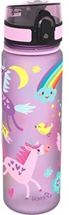 ION8 Butelka na Wodę, 500 ml/18 oz, Szczelna, Łatwe Otwieranie, Bezpieczny Zamek, Można Myć w Zmywarce, Bez BPA, Higieniczne Pokrycie, Uchwyt do Przenoszenia, Łatwa Czyszczenie, Liliowe Jednorożce