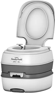 Model Handy Potti Silverline marki Stimax to przenośna toaleta chemiczna do wykorzystywania na łodzi, w domu letniskowym czy przyczepie kempingowej. Toaleta spłukiwana przy użyciu pompki ręcznej. Sedes wykonano z bardzo gładkiego tworzywa, dzięki czemu można bez problemu utrzymać obiekt w czystości. Kółka ułatwiają transportowanie i opróżnianie zbiornika.