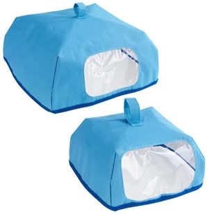 Praktyczne okienko pozwala zobaczyć zawartość pokrywy bez jej podnoszenia, co pomaga dłużej utrzymać temperaturę wewnątrz. Pokrywy termiczne są wykonane z wodoodpornego poliestru. Wygodne uchwyty ułatwiają podnoszenie przedmiotów, aby poczęstować się schowanym jedzeniem. Zestaw składa się z dwóch pokryw w różnych rozmiarach: mniejsza - 22 x 22 x 11,5 cm, większa - 37 x 37 x 15 cm.