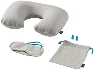 Zestaw podróżny Miami. Budowa: Miękki i delikatny zestaw podróżny zawiera: -dmuchaną poduszkę z jasnoniebieskim zamkiem, - maskę na oczy z jasnoniebieską gumką - jasnoniebieskie zatyczki do uszu. Zestaw jest spakowany w miękki pokrowiec zamykany jasnoniebieskim sznurkiem. Materiał: poliester Wymiary wys/szer/głęb (cm):