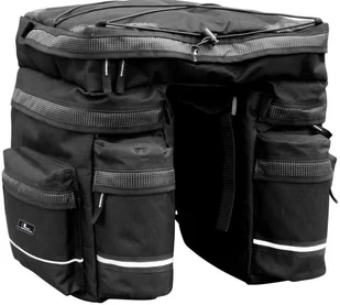 To jest automatyczne tłumaczenie wygenerowane przez software: Duża torba z dużą ilością bocznych kieszeni i elastycznymi paskami na górze. Torba jest dostępna w kolorze czarnym i ma wodoodporną osłonę oraz elementy odblaskowe dla lepszej widoczności i bezpieczeństwa na drodze. Wewnętrzna objętość 42,5L. Waga 1420g.