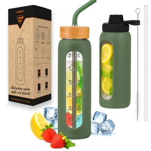 ▶️Szklana butelka na wodę z motywacją miarką z 2 słomkami bidon z ustnikiem ▶️Cechy produktu ⭐⭐⭐⭐⭐ 🧴Pojemność: 1000 ml 📏Wymiary: długość: 30cm, średnica: 8...