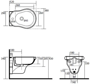 Kerasan Retro Bidet wiszący 52x38 cm czarny 1026CZB