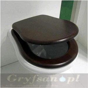 Kerasan to włoski producent ceramiki, który na rynku istnieje już od 1960 roku. Firma specjalizuje się w produkcji ceramiki łazienkowej takiej jak umywalki, miski WC, kompakty WC, bidety itp. Kolekcja Retro to klasyczna i wyrafinowana linia ceramiki łazienkowej, która jest w stanie harmonijnie dopasować się do najbardziej nowoczesnych środowisk dzięki nowej wersji podwieszanych misek WC i bidetów oraz trzech wersji kolorystycznych: oprócz standardowego koloru białego, są również dostępne polerowany czarny i czarny mat. Deska sedesowa Kerasan Retro, brązowa, złote zawiasy, 109140 bez systemu wolnego opadania, deska pasuje do misek Kerasan Retro o kodach: