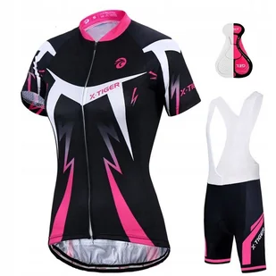 KOSZULKA ROWEROWA SPODENKI ROWEROWE DAMSKI KOMPLET ✔️ Marka: X-TIGER ™️ ✔️ Kolor: czarno-biały z różowymi wstawkami. ✔️ Materiał koszulka - 100% poliester, materiał spodenki - 87% poliester, 13% elastan. ✔️ Ochrona przed promieniowaniem UV - produkt spełnia normy UPF40+.