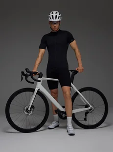 Legginsy na rower z szelkami męskie - CECHY: średni stan – zapewnia wygodę i uniwersalne dopasowanie zakres rozmiarów S-XXL – szeroki zakres rozmiarów dla różnych sylwetek krój slim – dopasowany fason podkreślający sylwetkę długość przed kolano – optymalna swoboda ruchów i komfort noszenia materiał syntetyczny – trwały i łatwy w pielęgnacji rozciągliwy materiał z elastanem (25%) – wysoka elastyczność dla maksymalnej wygody jednolita kolorystyka – łatwa do dopasowania do różnych stylizacji miękka i wytrzymała dzianina interlock – gładka struktura po obu stronach zapewnia komfort wnętrze bez podszycia – lekka konstrukcja zwiększająca przewiewność wkładka rowerowa z żelowym i piankowym wypełnieniem – zapewnia komfort i amortyzację podczas jazdy tylna kieszonka na zamek – bezpieczne miejsce na drobiazgi pas bez regulacji – elastyczne dopasowanie bez ucisku odblaski – zwiększają widoczność i bezpieczeństwo po zmroku antypoślizgowe elementy wewnątrz pasa – zapobiegają przesuwaniu się podczas ruchu szybkoschnące włókna 4FDry – skuteczne odprowadzanie wilgoci dla większego komfortu Spodenki rowerowe z szelkami męskie - niezawodne wsparcie na krótkich i długich dystansach Odzież przeznaczona na rower została stworzona z myślą o entuzjastach kolarstwa szosowego bez względu na poziom zaawansowania. Dzięki zastosowaniu funkcyjnych materiałów o mocno dopasowanej konstrukcji spodenki są nie tylko lekkie, ale także zapewniają swobodę ruchu potrzebną do osiągnięcia maksymalnej wydajności na szosie. Technologia 4FDry wraz ze strefami wentylacji skutecznie odprowadza wilgoć na zewnątrz, eliminując uczucie wyziębienia i utrzymując komfort nawet podczas intensywnego wysiłku. Nogawki z antypoślizgowymi elementami sprawią, że spodenki nie będą się zsuwać podczas jazdy w pozycji aerodynamicznej.
