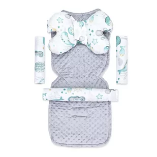 Cudownie przytulna i miękka wkładka do siedzenia o rozmiarze 75 x 35 cm jest doskonałym uzupełnieniem do każdego wózka i spacerówki. Dwustronna wkładka to piękna dekoracja i praktyczny gadżet, doskonale sprawdza się podczas długich spacerów. W ZESTAWIE znajduje się między innymi ochraniacz na pasy, który jest miękki i przyjemny dla Twojego dziecka, sprawiając, że spacer staje się jeszcze przyjemniejszy. Zalety: Pomaga utrzymać wózek, fotelik samochodowy i spacerówkę w czystości. Jest długa i częściowo pokrywa podnóżek.