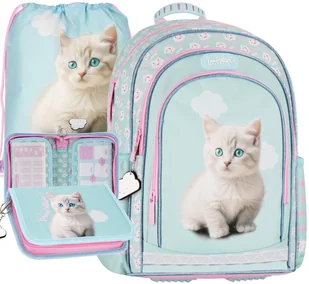 Zestaw składa się z: Plecak szkolny Cuties Kitty Piórnik szkolny dwuklapkowy Cuties Kitty Worek na obuwie sportowe Cuties Kitty Plecak szkolny Cuties Kitty P...