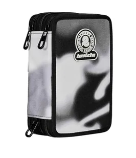 Invicta Piórnik szkolny z 3 suwakami, czarny i szary, potrójna przegródka, w komplecie z długopisami, ołówkami i markerami, akcesoria szkolne, akcesoria do plecaka, szkoły podstawowej, dziecko,
