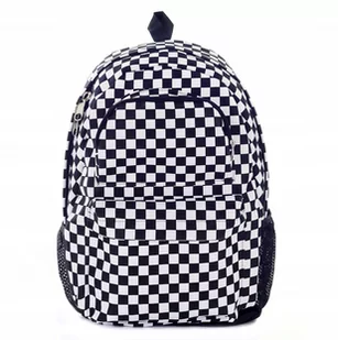 metalowe waga: ok. 0,600g jedna ko,ora Plecy usztywnione Grube profilowane szelki Dno nieprzemakalne boczne kieszonki siatkowe kieszonka z przodu Wymiary: ok. 45 x 32 x 16 cm KOLOR SZACHOWNICA ( inne kolory dostępne na naszych aukcjach )