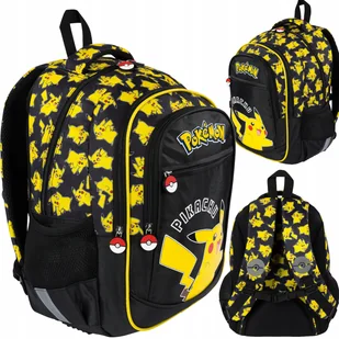 Plecak Szkolny Pokemon Pikachu 3 komory tornister Czarny St. Majewski