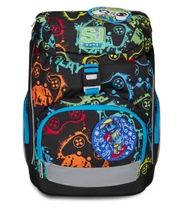 SJ Gang Plecak szkolny Updown Soft, czarny, wielokolorowy, jednokomorowy z regulowanym paskiem w talii, boczną kieszenią na zamek błyskawiczny, siatkową kieszenią na butelkę, plecak do szkoły
