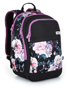 Pierwsza jest bardzo głęboka, a druga znajduje się pod nadrukiem materiału z różami. Tył plecaka tworzą grubo wyściełane i anatomicznie uformowane plecy, które zawierają w środku lekki stelaż aluminiowy. Można go wyjąć, ale nie polecamy - wraz z szelkami dba o to, aby ciężar plecaka był równomiernie rozłożony na plecach. Szelki są szerokie i mają pas piersiowy, który jest regulowany. Po obu stronach plecaka znajdują się kieszenie zewnętrzne.
