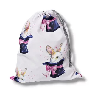 Worek na buty, worek na kapcie, strój gimnastyczny, zabawki, ubrania, bieliznę itp. uszyty z bawełny 100% z kolorowym wzorem króliki w kapeluszu Worek do prz...