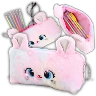 Piórnik Szkolny Saszetka Przybornik Włochacz Futerko Dla Dziewczynki Kotek Biały