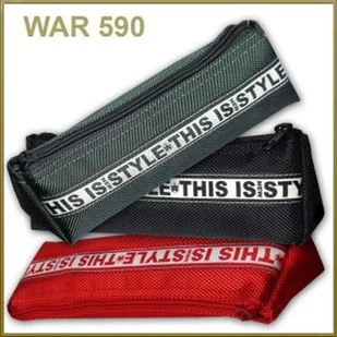 Piórnik na długopisy wykonany z grubej kodury 1680", ozdobionej naszywką STYLE. Piórnik o wymiarach 22x6x5[cm]. Pakowany po 14 sztuk w kartonie w 5 wersjach kolorystycznych czarny, czerwony, niebieski, granatowy, szary. Piórnik bez wyposażenia. UWAGA: