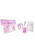 - kalkulator - notes w linie na spirali - długopis z ozdobą - arkusz naklejek do dekorowania Zestaw zapakowany w przezroczystą saszetkę z dwoma przegródkami zamykanymi na zamek.