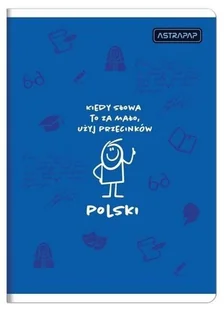 Astra Zeszyt A5/60K linia Polski (10 szt). Zeszyt. okładka: miękka z napisem Przedmiotu co ułatwia jego identyfikację wśród innych zeszytówwewnątrz: adresówka i dodatkowa tematyczna kartka z podstawowymi najważnieszymi informacjami oraz wzorami z danego przedmiotuśrodek: kratka, 70 gm2format :