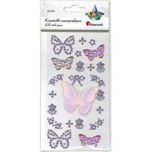 Kryształki samoprzylepne motyle 23 szt. Kryształki samoprzylepne motyle mix (w tym z kryształków 36x28mm, akrylowe 32x18mm, z muliny na tkaninie 54x45mm) fioletowe 23szt