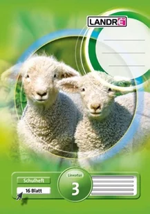 Landré Landre 100050090 zeszyt 16-kartkowy A4, w wąskie linie, numer rodzaju linii 3 (z marginesem), gramatura 80 g/m, cienki, bezdrzewny papier do pisania, zestaw 10 sztuk, 3 wzory okładek 100050090