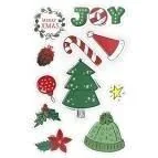 Naklejki papierowe 11 wzorów. Naklejki papierowe 10 plansz napis Joy, wianek, choinka, czapki, bombki 11 wzorów - 110szt