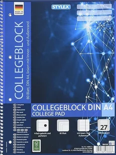 PRODUKT NOWY Notatnik / Zeszyty na spirali A4 w linie firmy Stylex, 80 kartek niebieski Papier bezdrzewny o gramaturze 60 g/m² Liniatura 27 – w linie z margi...