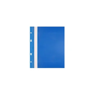 -folia PVC, przód twardy przezroczysty, tył twardy kolorowy,<br>-boczna perforacja umożliwiająca wpięcie do segregatora z dowolnym ringiem,<br>-w środku blaszka i wąs o długości 16,5 cm, umożliwiający wpięcie dokumentów do 2 cm,<br>-wymienny, papierowy pasek do opisu,<br>-dwa wycięcia ułatwiające wysuwanie paska,<br>-w formacie A5 zaokrąglone rogi obu okładek,<br> <br>