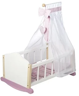 roba Roba Kołyska dla lalek z serii "Scarlett", łóżko dla lalek do ważenia, w tym wyposażenie tekstylne, pościel i niebo, akcesoria dla lalek, lakierowane na biało