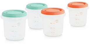 Zestaw czterech wysokiej jakości trwałych pojemników próżniowych o pojemności na jedną porcję (0,25l). Znakomicie nadają się do przechowywania przecierów, zupek i kaszek dla niemowląt. Praktyczne na podróż lub spacer. Pojemniki mogą być myte w zmywarce oraz używane w mikrofalówce czy zamrażarce (za wyjątkiem pokrywek). W 100 % wolne od bisfenolu A.