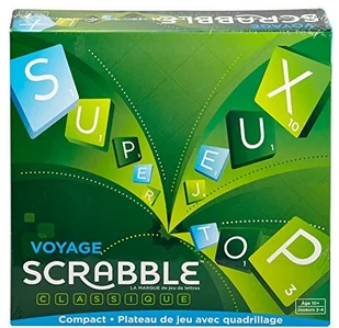 Mattel Games Scrabble podróż, miniaturowa edycja 20 x 20 cm, gra planszowa i liter, wersja francuska, CJT12