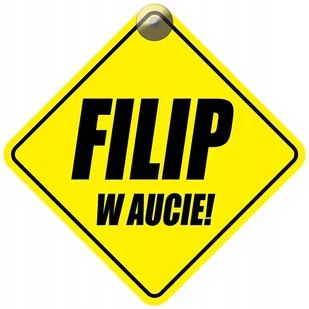 Tabliczka z przyssawką - FILIP W AUCIE SPECYFIKACJA: Materiał: HIPS 1mm - odporny na wysokie temperatury (nie odkształca się) Druk: UV, odporny na promieniow...
